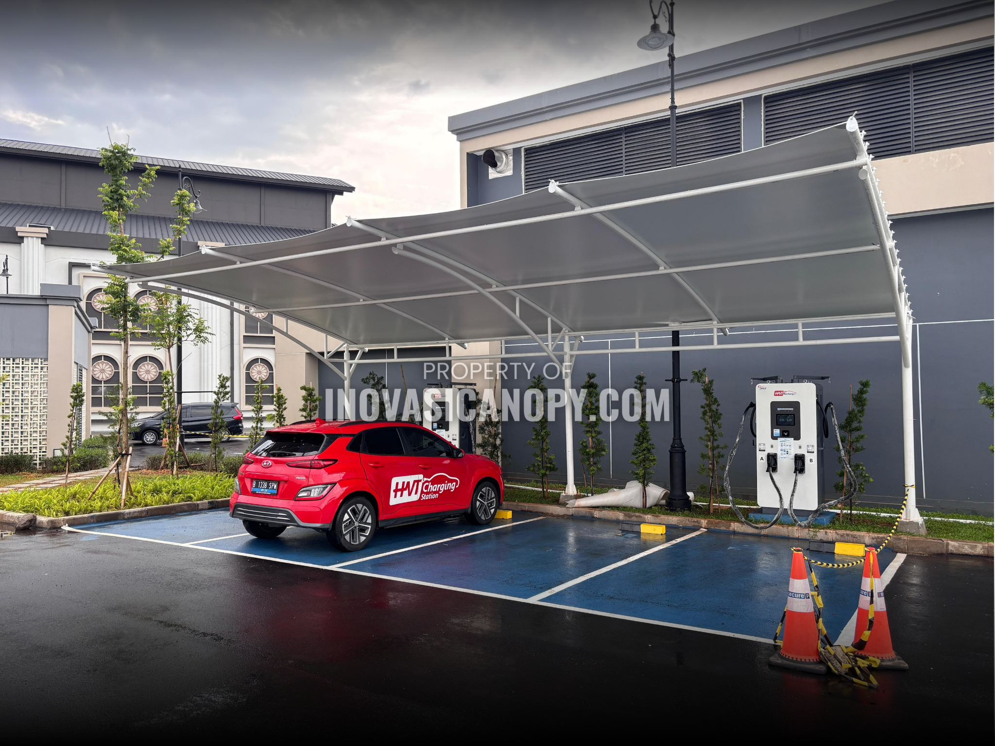 Canopy membran menghadirkan kesan premium dan futuristik, sangat cocok untuk area luas dan bangunan komersial.