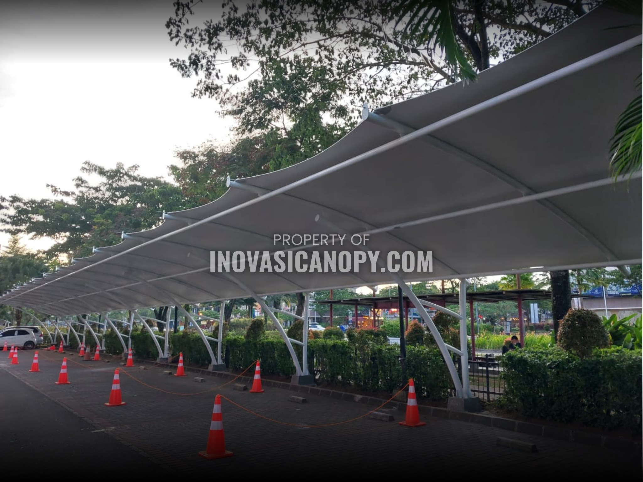 Menggunakan material membran berkualitas dengan struktur rangka terhitung, mampu menutup bentang lebar, tahan cuaca, dan minim perawatan untuk penggunaan jangka panjang. Keunggulan: Desain melengkung modern & eksklusif. Material kuat, tahan cuaca ekstrem. Cocok untuk area parkir, kafe, dan proyek besar. Meningkatkan nilai visual bangunan.
